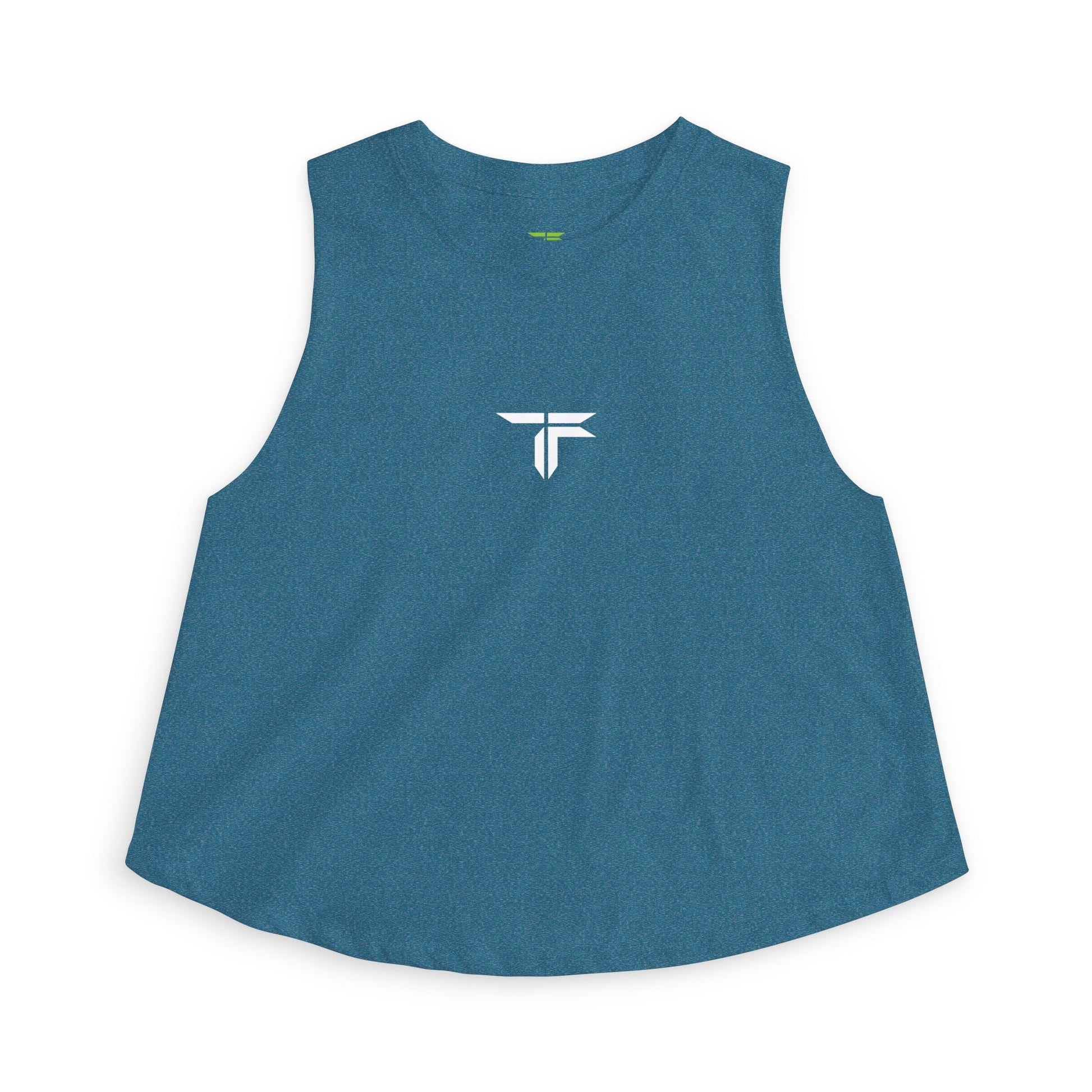 Light and breezy with an edge — this cropped tank sits loose through the body and finishes with raw-cut sleeves for a casually undone look. The fabric is featherlight and smooth against skin, so it layers easily over a sports bra for morning runs or pairs with high-waisted denim for late-afternoon coffee. A small, bright emblem at the chest adds a sporty, modern touch without shouting. Wear it to move, to stretch, to wander — it feels like the kind of top you reach for when you want comfort that still looks intentional.